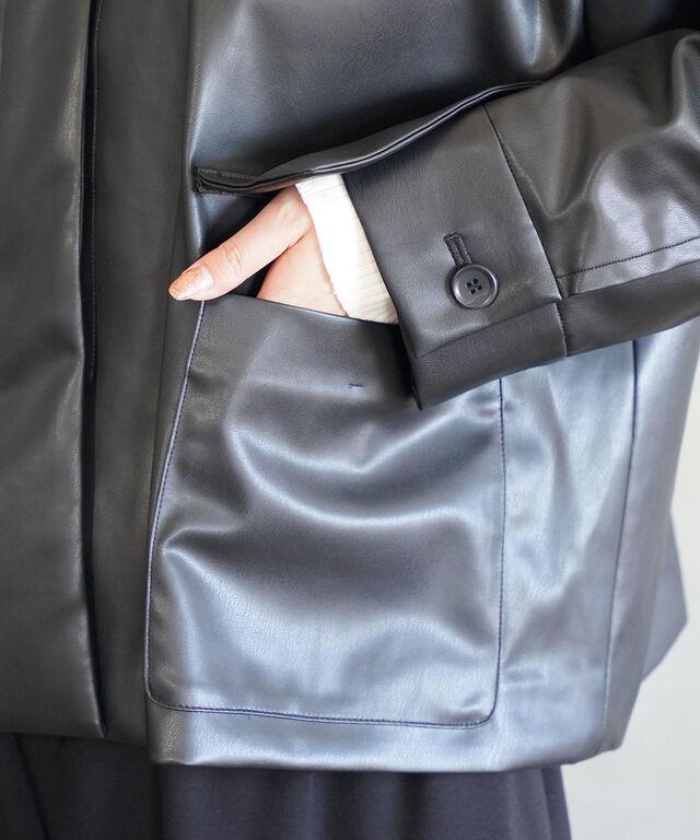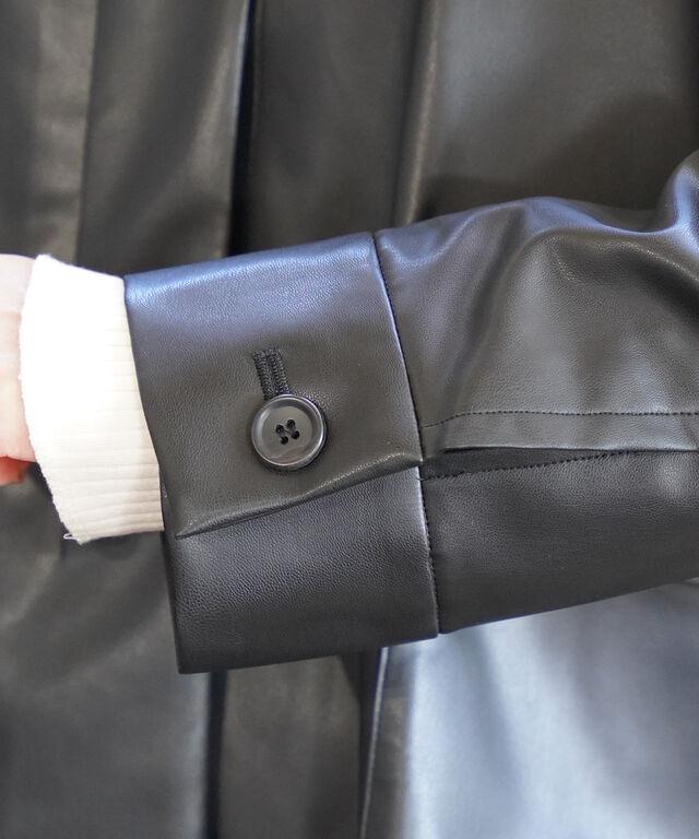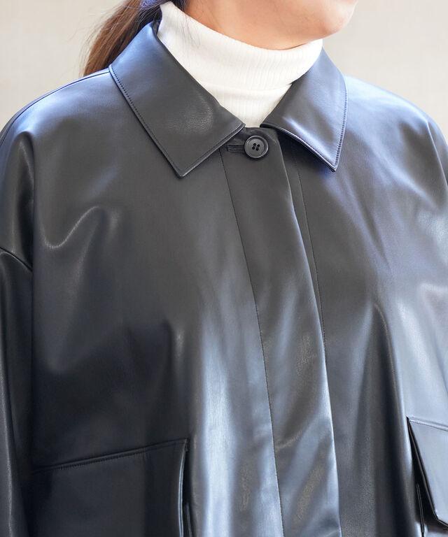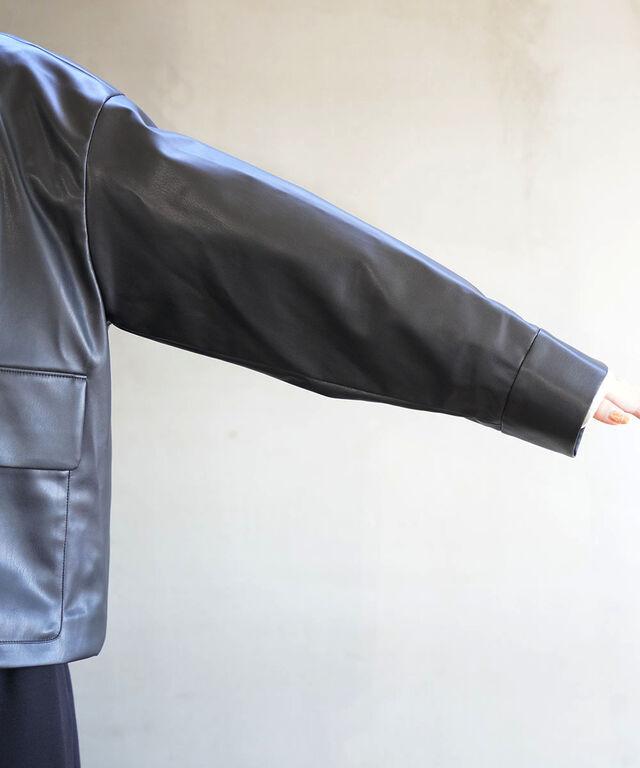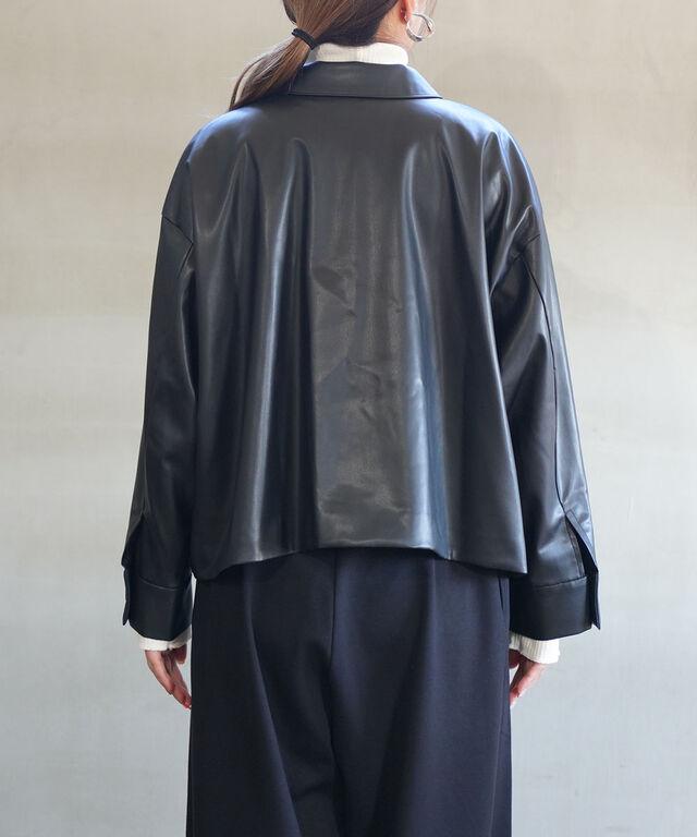 mizuiro ind(ミズイロインド)の「シンセティックレザー シャツジャケット」。