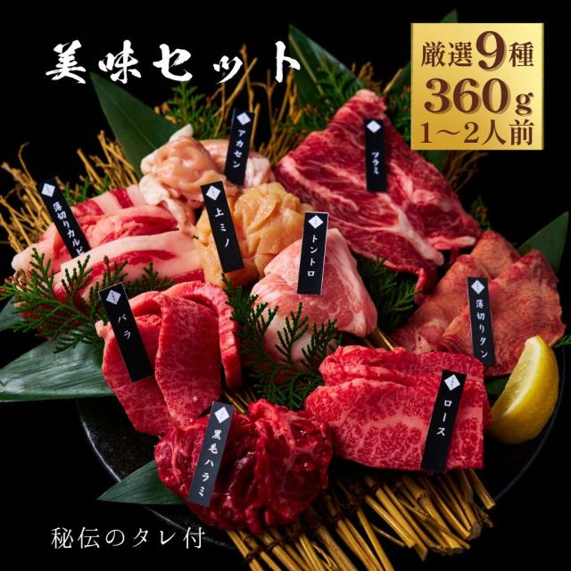 焼肉セット9種食べ比べ 360g 約1〜2人前 肉 プレゼント タレ付き ハラミ ホルモン 国産牛 男友達 お取り寄せ 贈答用 牛肉 牛タン お祝い ご挨拶 御礼 結婚 誕生日 出産 バーベキュー 肉ケーキ (美味セット) 大阪 鶴橋 白雲台 バレンタイン