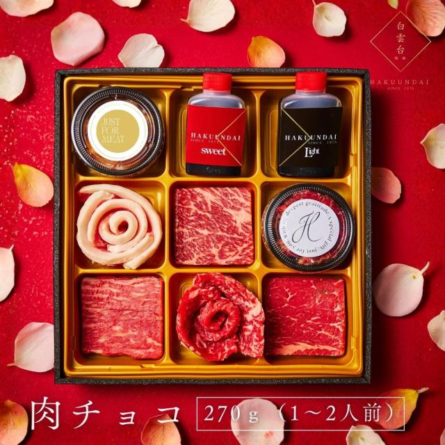 【選べるお祝い帯付き】肉チョコ ギフト 270g|焼肉屋が本気で作った“チョコみたいなお肉” タレ2種付き|赤身ステーキ・タレ漬け肉・トントロの花|サプライズ プレゼント(肉チョコ)