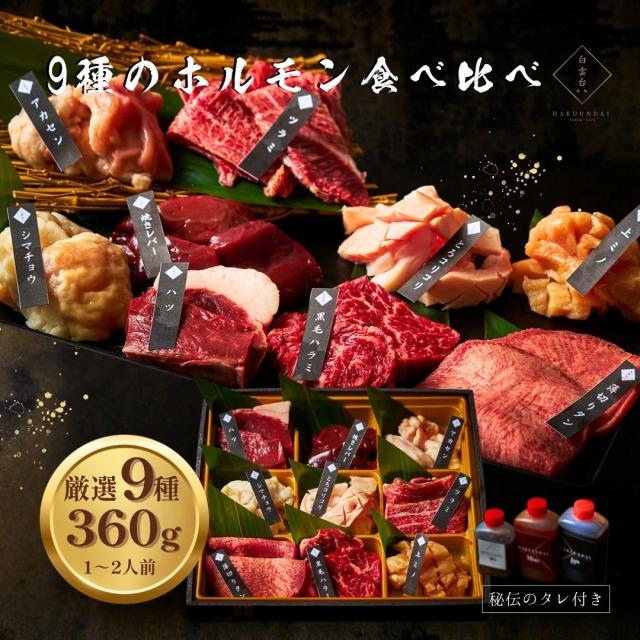 9種のホルモン食べ比べ 360g タレ付き プレゼント 牛タン 焼肉セット 焼肉盛り合わせ バーベキュー お家焼肉 お祝い 韓国グルメ 誕生日 出産 結婚 快気祝い 牛肉 本格焼肉 お取り寄せ ギフト (ホル9) 大阪 鶴橋 焼肉白雲台 バレンタイン