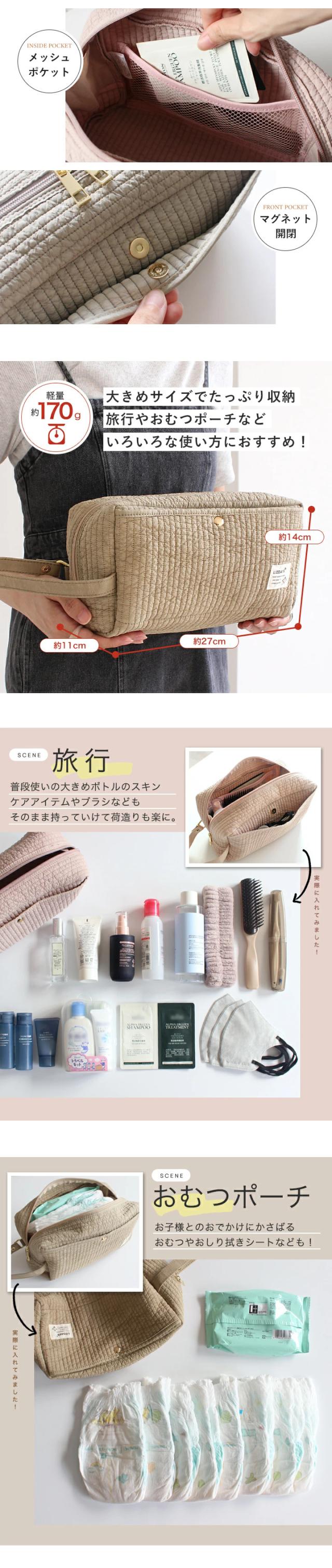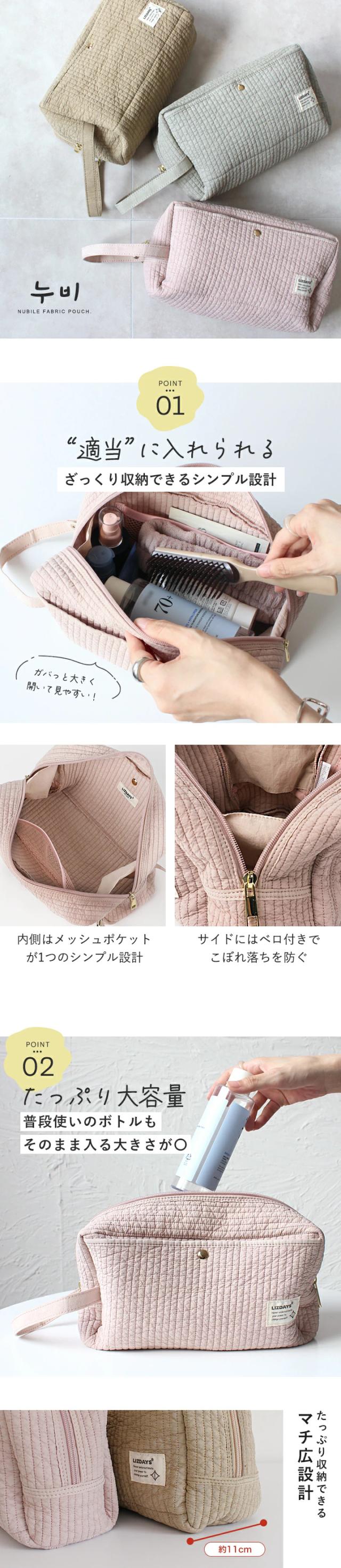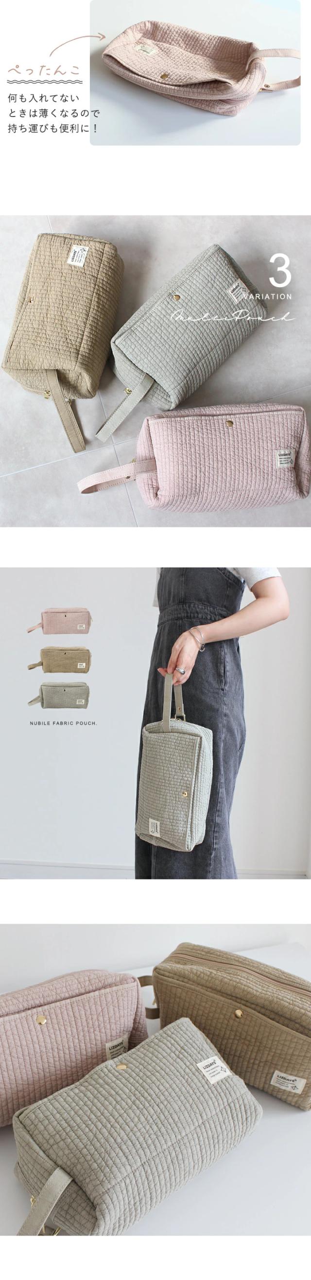 【全3色】なんでもポンポン入る!大きめが便利な韓国ヌビ生地マルチポーチ。