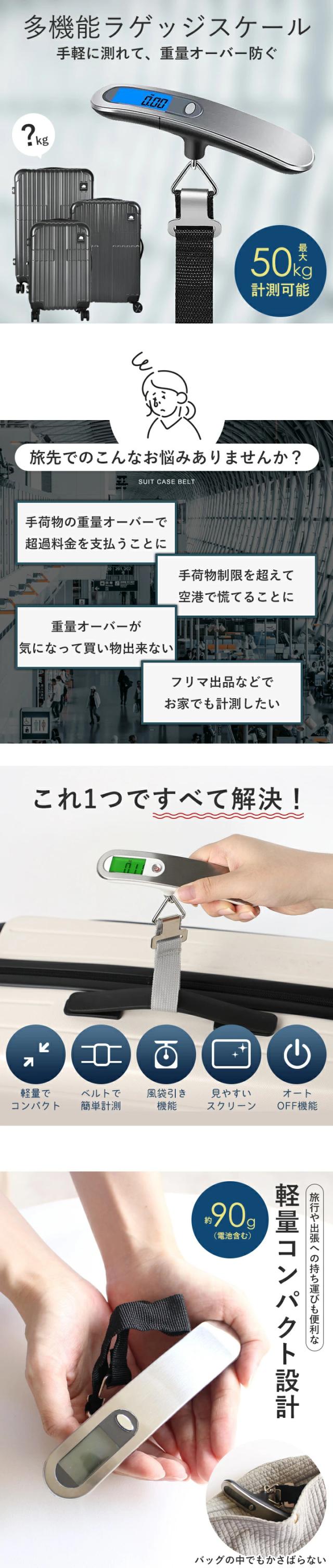 【全2色】最大50kgまで計測可能!多機能なデジタルラゲッジスケール。