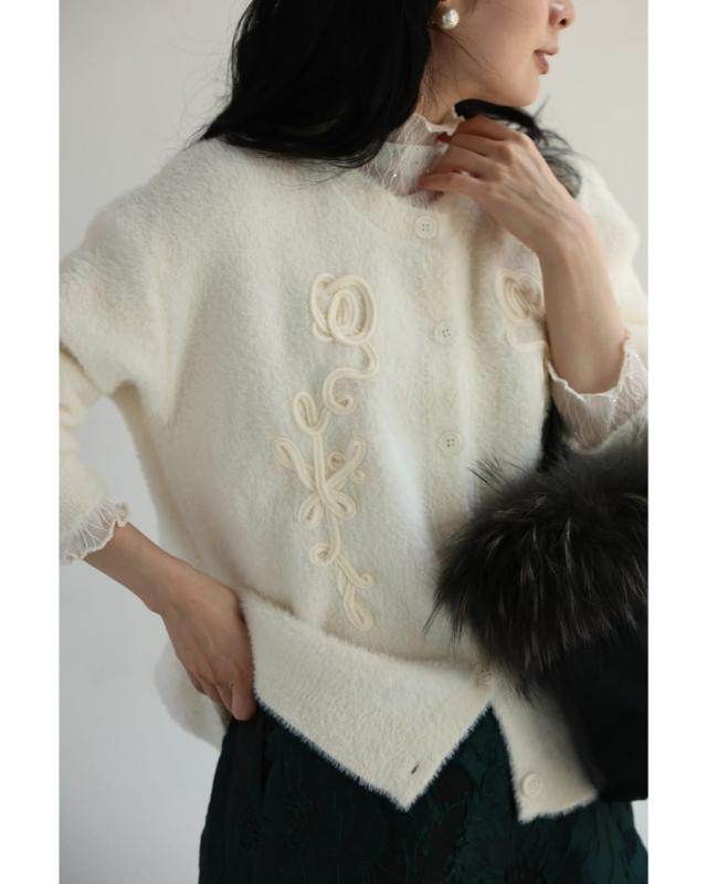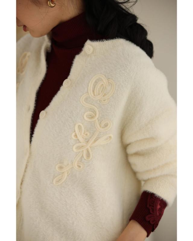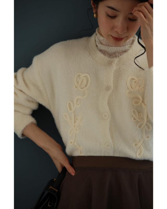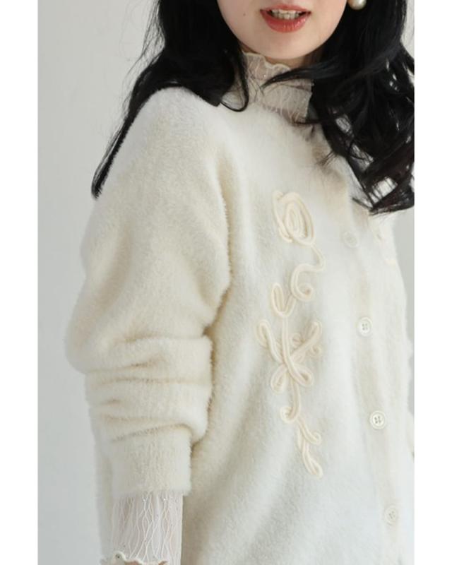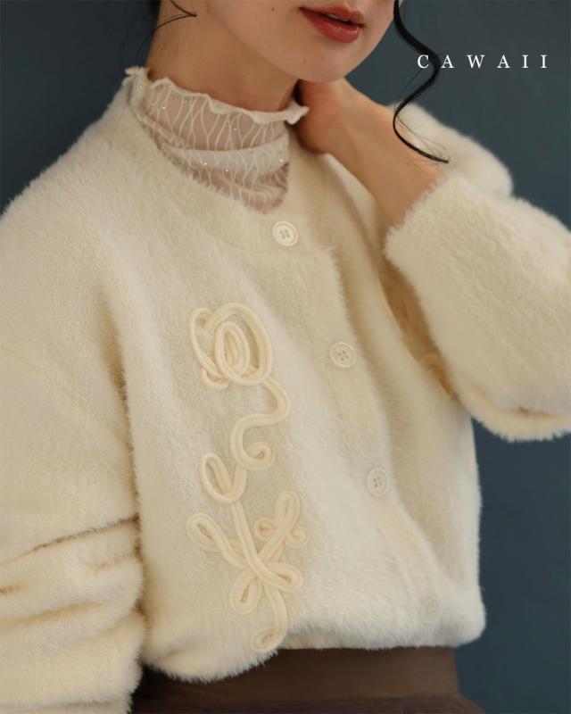 新作12月1日 1輪の花モチーフ浮かぶ起毛もちもちニットカーディガン cawaii fsz00069ss S~3L対応 羽織り 長袖 丸首 ふんわり 花柄 アイボリー オシャレ 個性的 大人可愛い エレガント 上品 春 秋服 冬服 暖かい 伸縮 レディース ファッション ミセス 30代 40代 50代