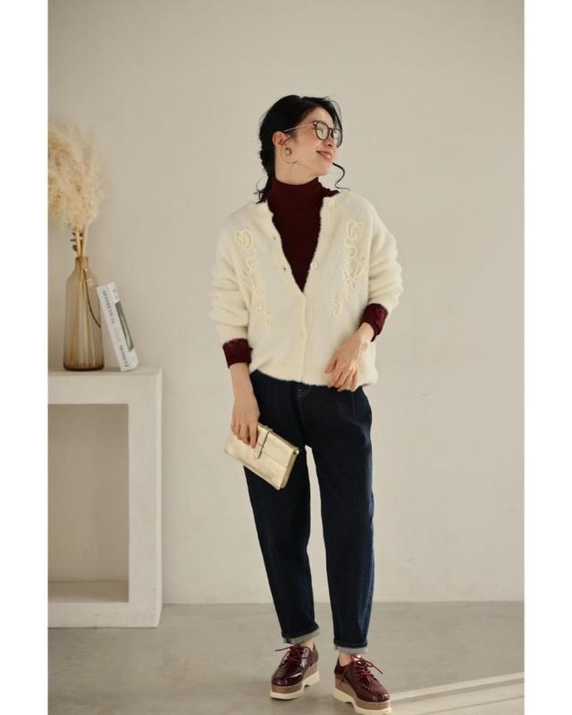 fsz00069ss 新作 新着 再入荷 CAWAII FRENCHPAVE フレンチパヴェ エレガント ベーシック カジュアル 可愛い かわいい カワイイ おしゃれ オシャレ お洒落 個性 個性的 定番 ベーシック 大人かわいい 大人可愛い 上品 女性らしい デザイン スタンダード ナチュラル きれいめ キレイめ シンプル フェミニン レディース レディースファッション 大人 ママ ミセス 30代 40代 50代 60代 1輪 花 モチーフ 浮かぶ 起毛 もちもち ニット カーディガン 長袖 丸首 クルーネック 羽織り ボタン ふんわり フワフワ 柔らかい S M L 2L 3L フリーサイズ フリー 小さめ 小さめサイズ小さい 小さいサイズ 低身長 痩せ ほっそり 小柄 細身 標準サイズ 大きめシルエット 大きい 大きめ ビッグシルエット ぽっちゃり F サイズ自由 厚手 あったかい あたたかい 暖かい ぬくい 春 秋 冬 秋服 秋物 冬服 冬物 着回し 重ね着 レイヤード 楽ちん 伸縮 アイボリー ホワイト 白色 花柄 フラワー柄 ガーデン 日常着 普段着 日常使い ヘビロテ オフィスカジュアル 会社 おでかけ 旅行 女子会 食事会 デート 買い物 大人女子