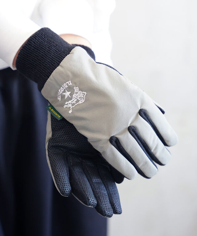 【素材】表地 甲部:ナイロン100%、掌部:コットン100%、マチ部:アクリル100%、カフス部:アクリル88%、ナイロン11%、ポリウレタン1%、裏地:ポリエステル100%