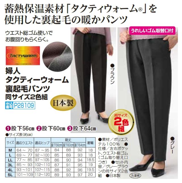 日本製 婦人 タクティーウォーム 裏起毛パンツ 2色組 選べる股下丈 スラックス 裏起毛 ズボン あったかパンツ レディース 婦人服 ミセス シニア 女性 大人 グレー ブラウン 灰色 茶色 センタープレス きれいめ 上品 シンプル シニアファッション 40代 50代 60代 70代 80代 90代 母の日 お母さん おばあちゃん 秋物 冬物 秋冬 暖かい あったかい 裏起毛スラックス ウエストゴムパンツ