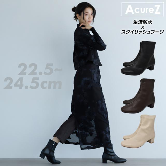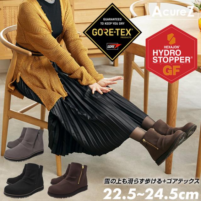 アシックス商事 アキュアーズ サイドファスナー ブーツ レディース 生活防水 3E相当 幅広 雨 黒 茶色 生成り ブラック ダークブラウン アイボリー asics AcureZ asics 小さいサイズ 大きいサイズ 婦人靴 オシャレ おしゃれ ポイント消化