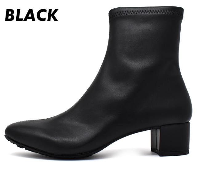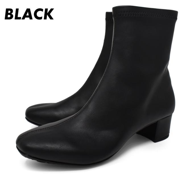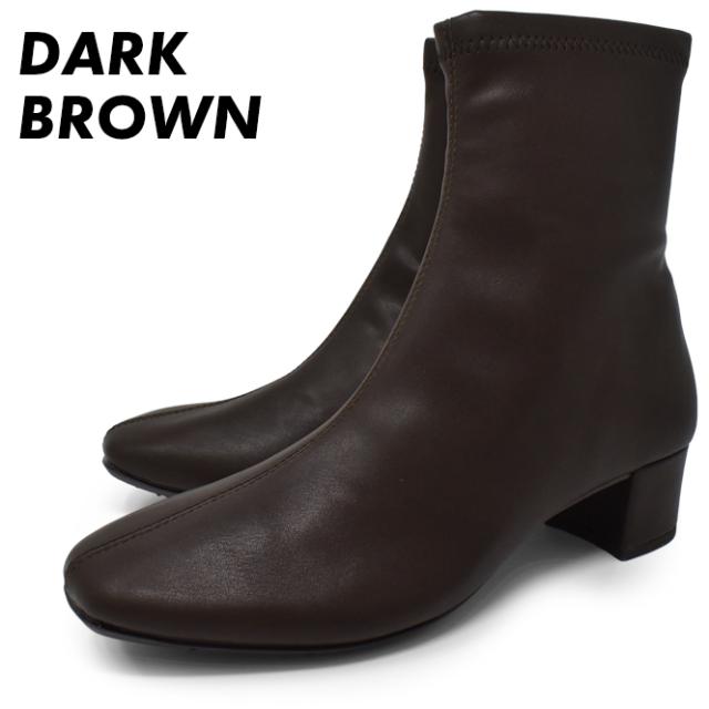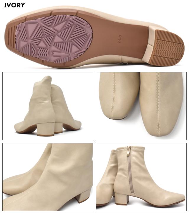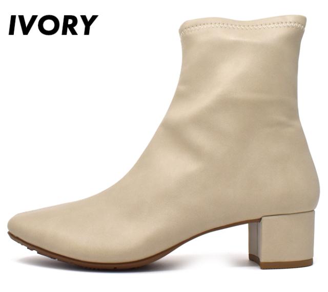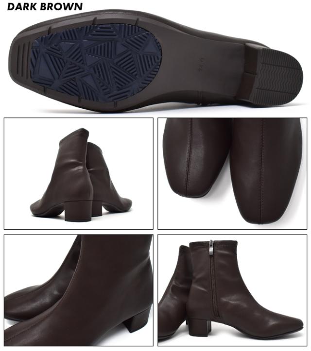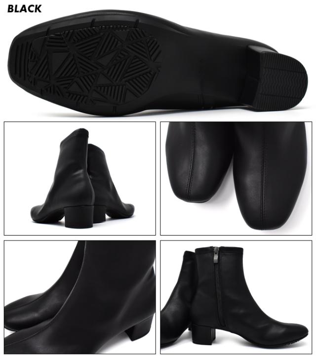 ・約4センチヒールのスクエアトゥのストレッチブーツ。