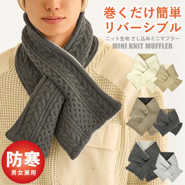 差し込み ニットマフラー 両面 リバーシブル 軽量 ニット 暖かい ケーブル&リブ編み 細幅で巻きやすい ネックウォーマー 軽い st-118 メール便は送料無料 短い マフラー 肩が凝らない 防寒 メンズ レディース 冬 2WAY 男女兼用 寒さ対策 プレゼント 即納