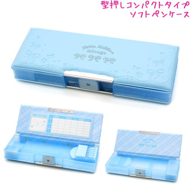 筆箱 小学生 ソフト ペンケース コンパクト 女の子 向け ルックイン プチリボンミラージュ ブルー 両面開き 一年生 二年生 新入学 新学期 クーリア おしゃれ で かわいい 文房具