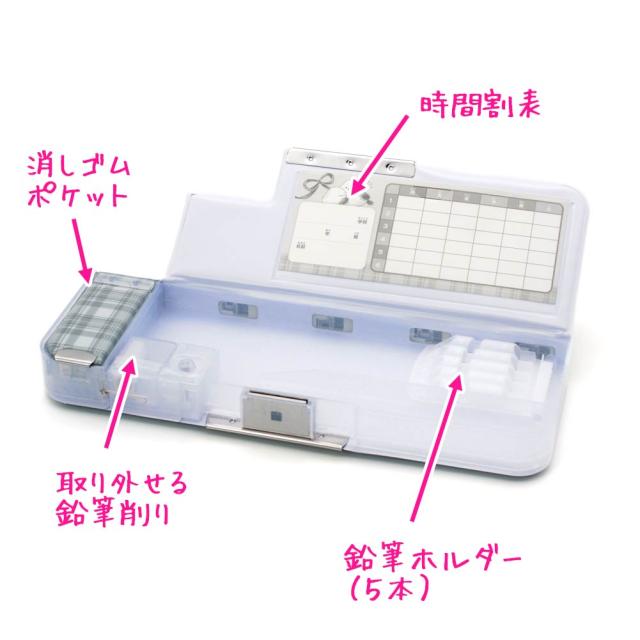両面開き仕様で、鉛筆や文具の整理がしやすく、使いたいものをすぐに取り出せます。