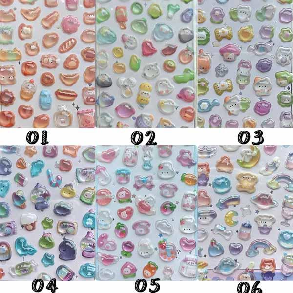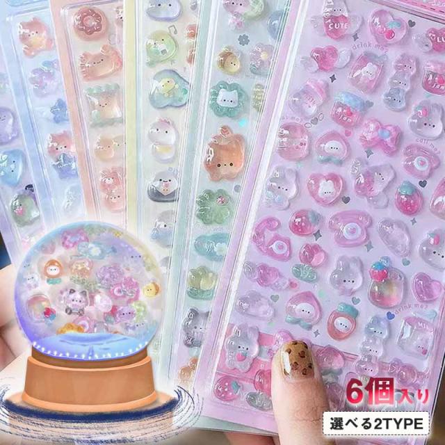 2個購入で3セットお届け! ボンボンドロップシール ご褒美シール 6個セット 可愛い 3D スマホケース DIY 手作り 手帳 ステッカー 中空 実心 アルバム デコシール 日記帳 手芸用[実心タイプは有料オプション選択]