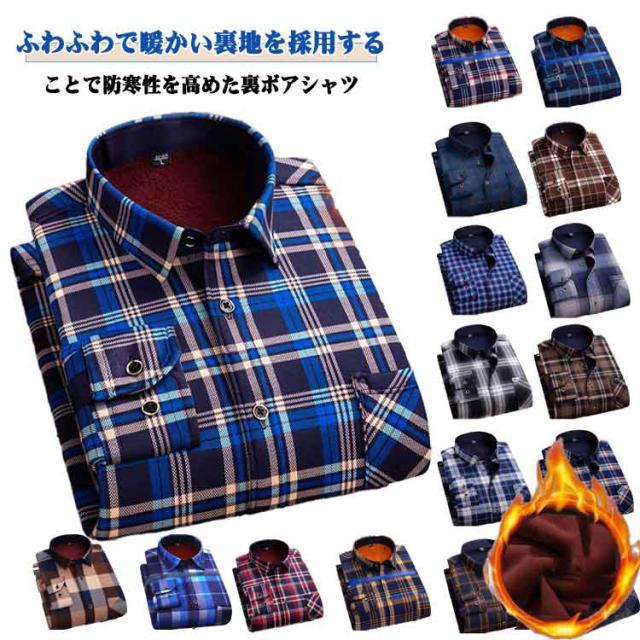 裏ボア 裏起毛 チェックシャツ メンズ ネルシャツ 厚手 あったか 裏起毛 長袖 ワイシャツ 開襟 裏ボア シャツジャケット 秋冬 冬服 ビジネスシャツ 紳士 裏ボア カジュアルシャツ 防寒着 暖かい おしゃれ カジュアル チェック柄 通勤 通学 送料無料