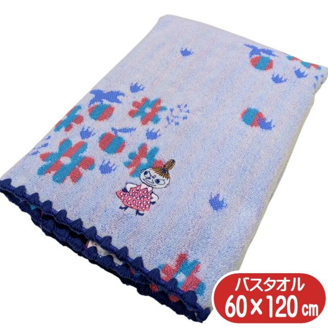 ムーミン バスタオル ブルームデイズ リトルミイ MOOMIN キャラクター ビッグタオル 60×120cm 無撚糸 アップリケ刺繍 丸眞 ブルー