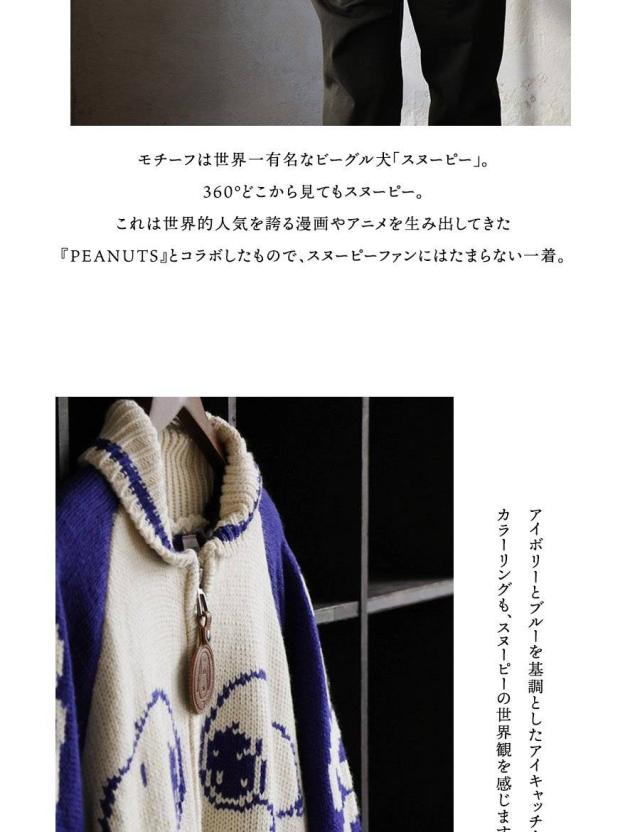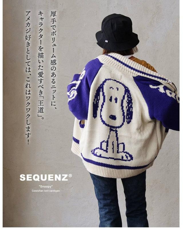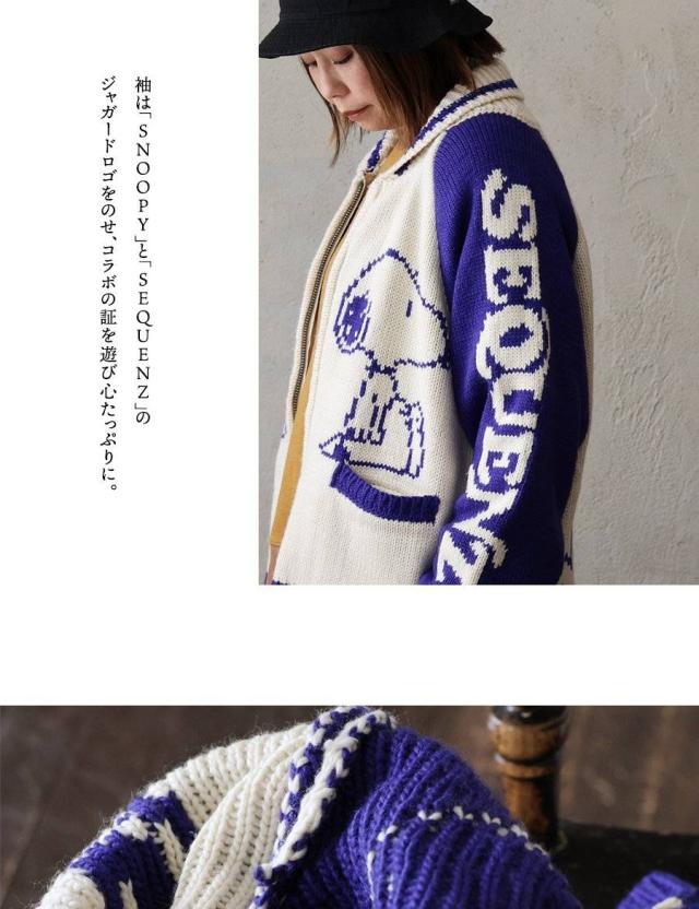 ・袖は「SNOOPY」と「SEQUENZ」のジャガードロゴをのせ、コラボの証を遊び心たっぷりに。