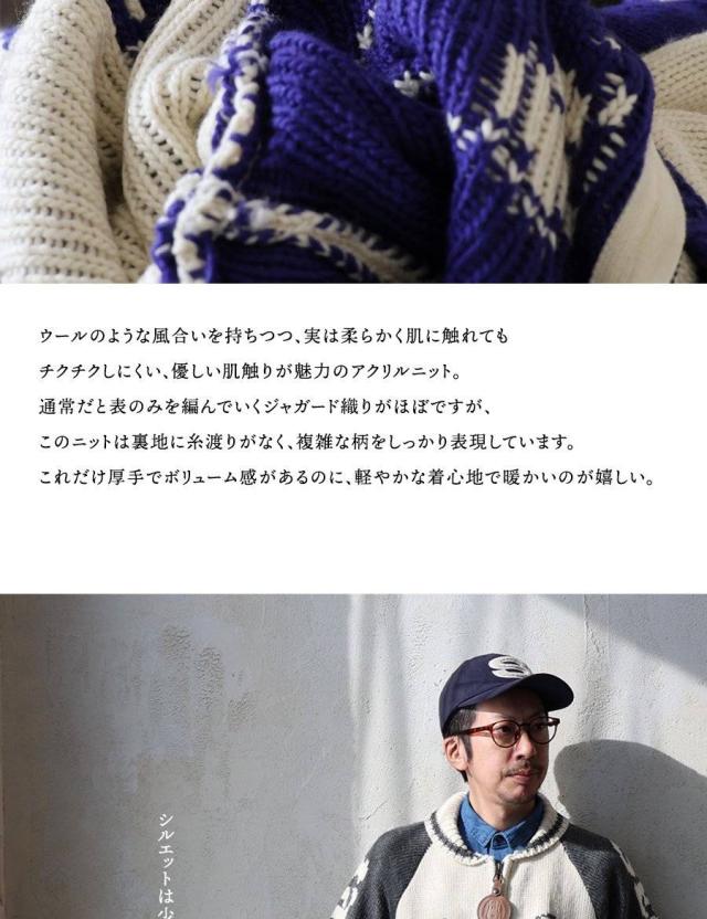 ・通常だと表のみを編んでいくジャガード織りがほぼですが、このニットは裏地に糸渡りがなく、複雑な柄をしっかり表現しています。