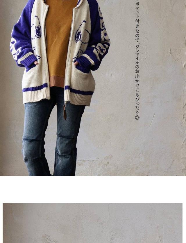 カーディガン カーデ ニット メンズ レディース スヌーピー キャラクター カウチンニット アクリル100 厚手 伸縮性 チクチクしない ゆったり 大きいサイズ カジュアル 秋 冬 動物 アニマル パティ