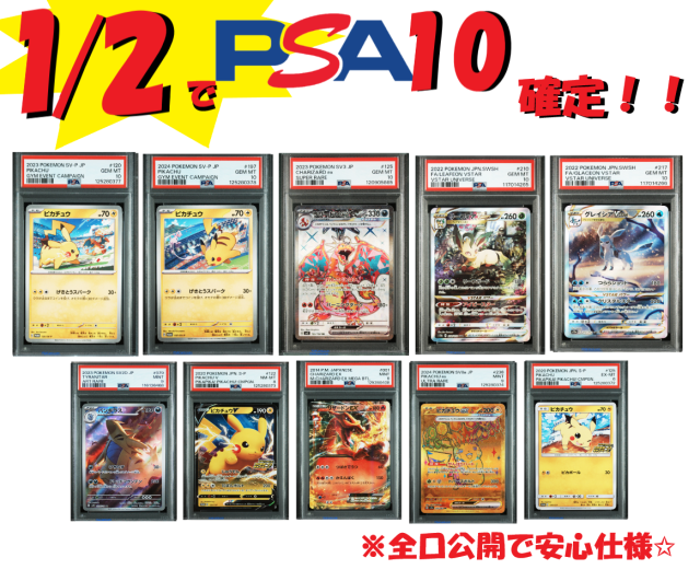 【マイルドタイプ第2弾】 ポケモンカード 1/2でPSA10確定オリパ|全10口限定|PSA10・PSA9以下 ラインナップ全公開安心仕様 中古品 pokemon ポケカ ポケモン PSA PSA鑑定 鑑定品