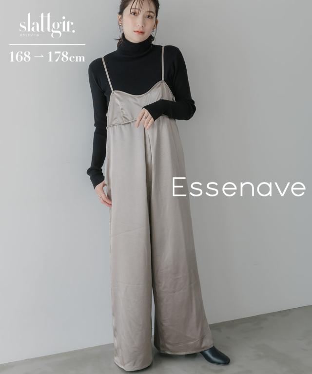 サロペット オールインワン オーバーオール トールサイズ レディース 高身長 サテンビスチェキャミ Essenave 秋 冬 大きいサイズ | M/L | ニッセン nissen