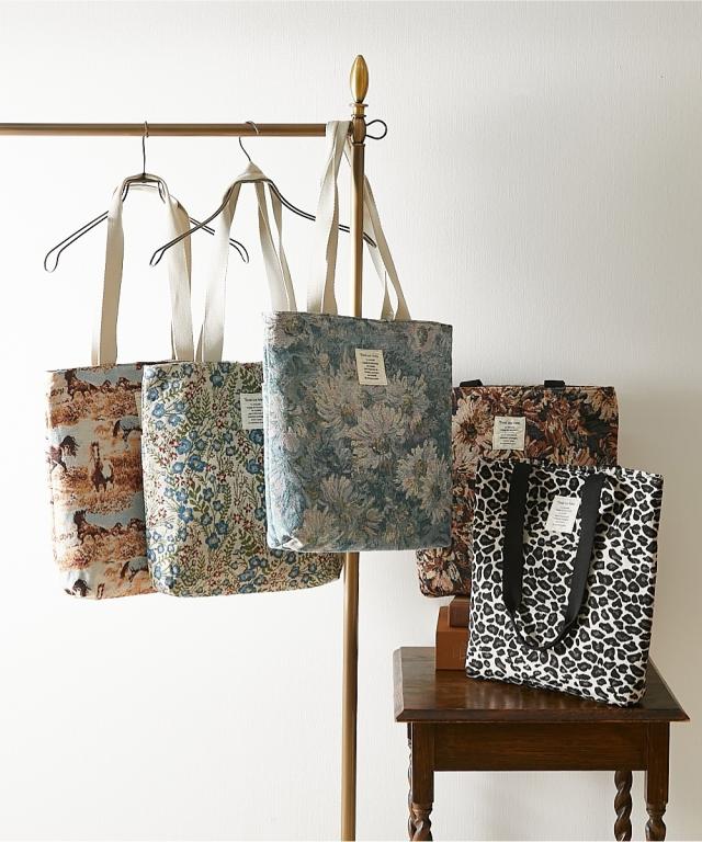 【商品詳細】ポルカポルカ(polka polka)が提案する、装いに絵画のような奥行きを添える「きれいな彩り美ジャガードトートバッグ(A4対応)」。糸で描いたジャガード柄ならではの立体感と色の重なりが、ひと目で印象に残るシリーズです。メイン室はA4書類やノート、長財布、500mlボトル、ポーチまでまとめて持ち歩ける容量感。開口が広く中身を見渡しやすいので、出し入れの所作もスムーズです。長さのあるハンドルは肩掛けしやすく、コートの上からでも収まりよく持てるバランス。フロントのタグがアクセントになり、デイリーから通勤通学まで幅広いシーンに寄り添います。柄違いで揃えても楽しい、シリーズ使いにぴったりのアイテムです。【デザイン】すっきりとした縦長フォルムに、面で魅せる総柄をのせたミニマル設計。直線的なシルエットが柄の美しさを引き立て、合わせる服を選ばないクリーンな印象です。ハンドル幅は手持ち・肩掛けのどちらでも安定しやすく、日常の動きに馴染む取り回しのよさが魅力。内側は仕切りすぎないレイアウトで視認性を意識し、こまごました小物の定位置づくりをサポートします。柄はフラワー、クラシック調、レオパード、ホースなど表情の異なるバリエーション。気