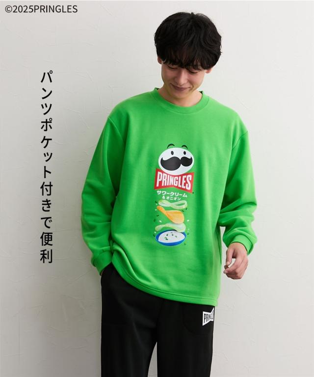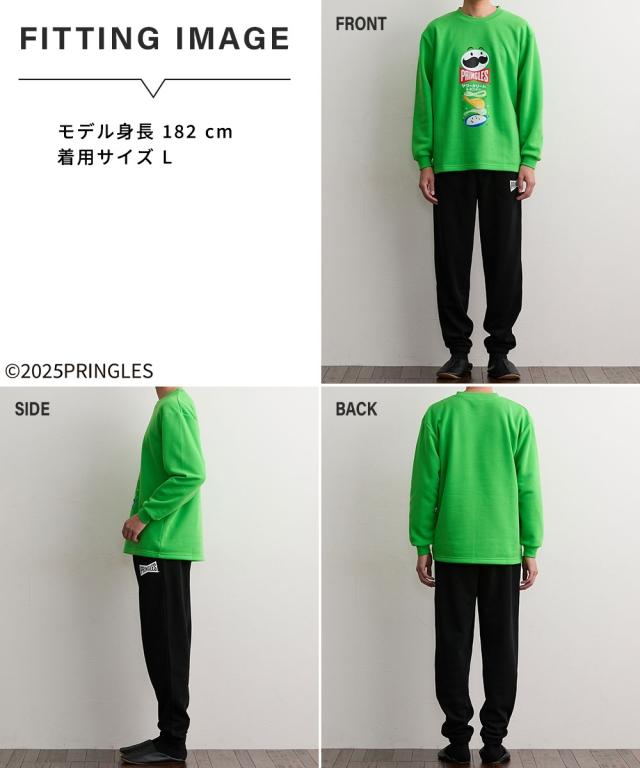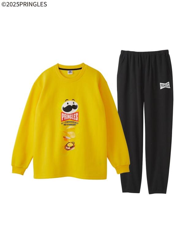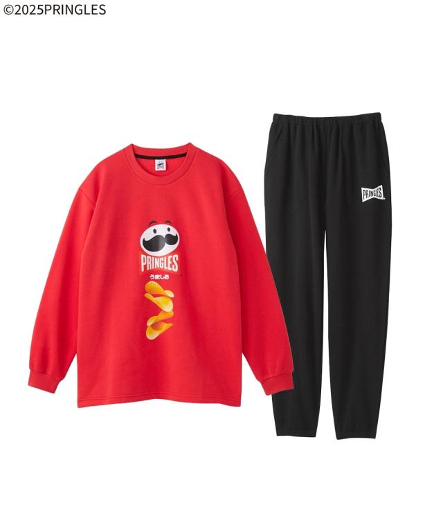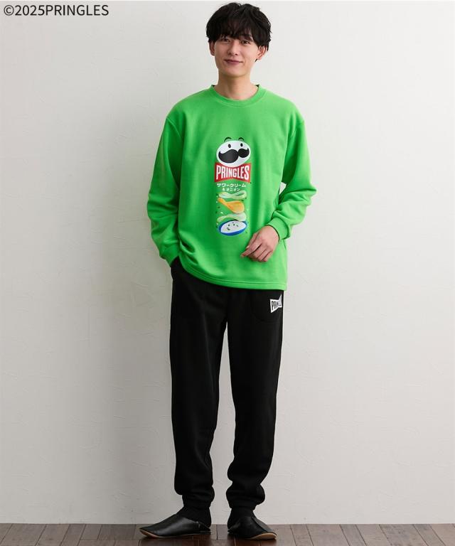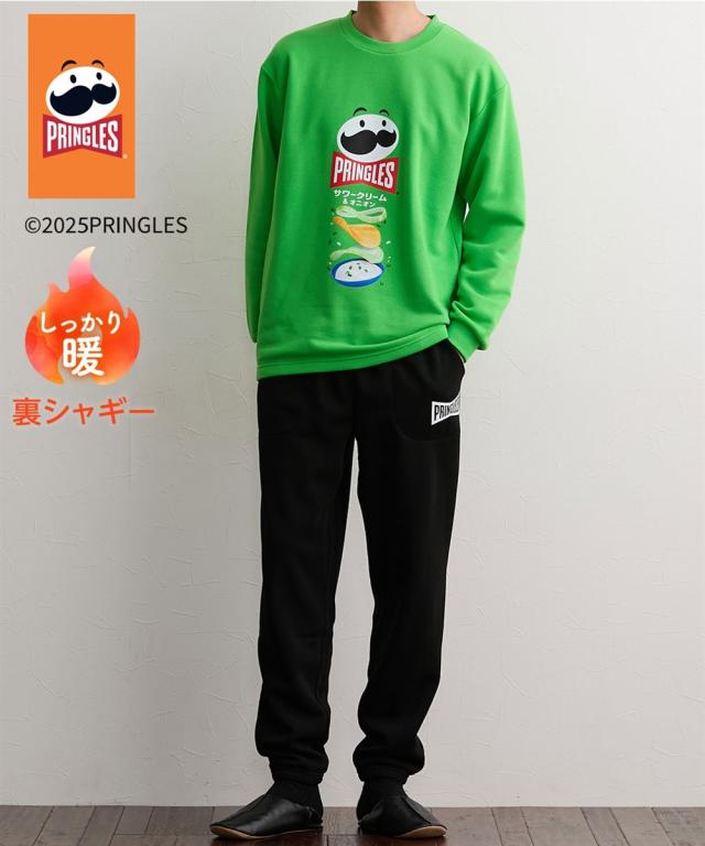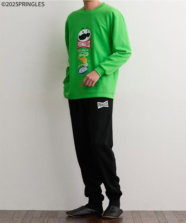 ポテトチップスの代表ブランド「プリングルズ」がプリントされたルームウェア。 着るだけで気分が明るくなる、遊び心のあるデザインです。 「サワークリーム&オニオン」柄のグリーン「ハイチーズ」柄のイエロー、「うましお」柄のレッドの3“食”展開。全部揃えたくなるラインナップです。 裏シャギー素材を使用しているので、冬場のルームウェアに最適。トップスの袖口やパンツの裾口にはゴムが入っており、しっかり防寒できます。 パンツにポケットが付いているのも、うれしいポイント。 クリスマスやバレンタインデーなどのイベントのプレゼントにもおすすめです。 ■デザイン トップスには、プリングルズ缶と同じ絵がプリントされています。 パンツはポケット付き・ゴム取り替え口付きで便利。 ■素材 裏シャギー素材を使用しています。 ■おすすめの着用シーン 部屋着 / 寝巻 / パジャマ / 寝間着 / 旅行 / オフ / メンズライク / ユニセックス / 館内着 / くつろぎ / 温泉 / 睡眠 / デート / おうち時間 / リラックス / ゆったり / プレゼント / ギフト / 誕生日プレゼント / 贈り物 / 彼氏 / 旦那 / パートナー / 息子 / 修学旅行 / 父の日 / クリスマス / バレンタインデー / 還暦祝い /