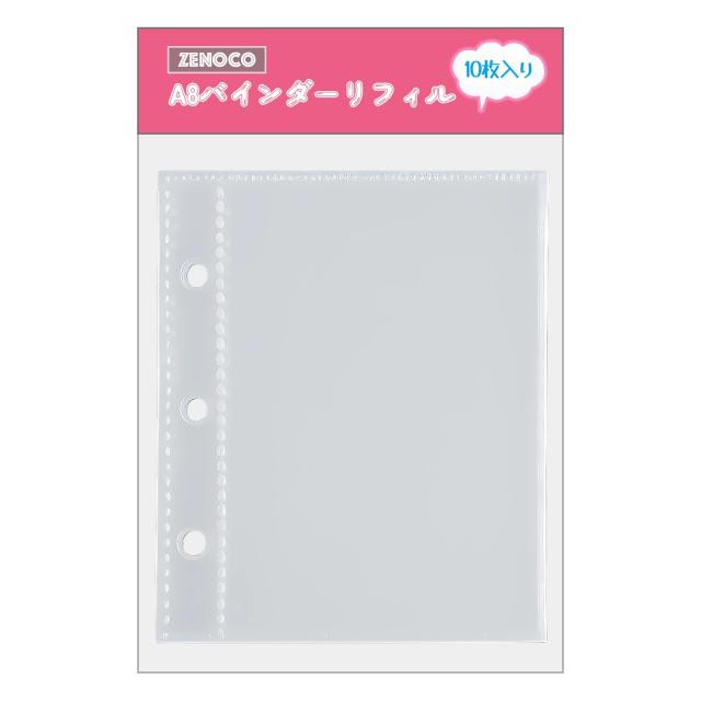 【A8サイズ完全対応リフィル】28?間隔の3穴設計で、A8規格のバインダーにぴったりフィット。コンパクトサイズ(外寸85×96mm)でスッキリ収納!