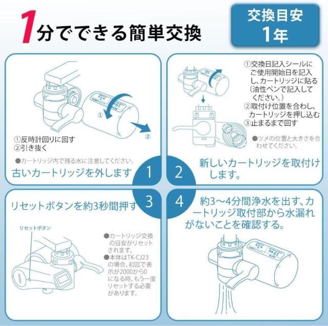 【適応機種】浄水器機種 TK-CJ14 、TK-CJ24 、TK-CJ23、 TK-CJ22、 TK-CJ21 、TK-CJ12 、TK-CJ11 、TK-CJ01、互換性のある本体品番TK-CJ01C1 、TK-CJ21C1 、TK‐CJ22C1 、TK-CJ23C1 、TK-CJ23C2。TK-CJ23C1/C2 TK-CJ01C1 TK-CJ22C1