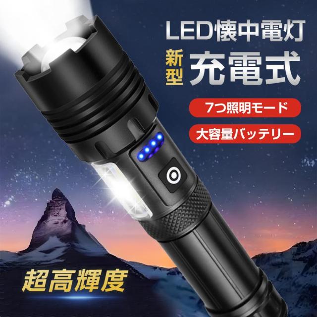 懐中電灯 LEDライト ハンディライト 充電式 タクティカルライト ledライト 電池残量 高輝度 防災用 コンパクト キャンプ 照明 ズーム機能付き