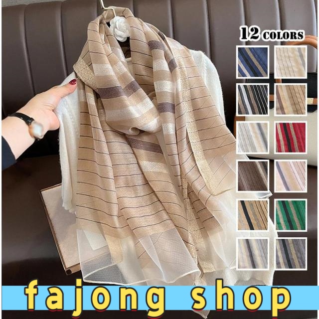 ストール 大判 ボーダー柄 マフラー スカーフ メンズ レディース 夏 UVカット 大判ストール 結婚式用 ショール ストール ラメ入り 肩掛け 冬用 春 秋 W-716