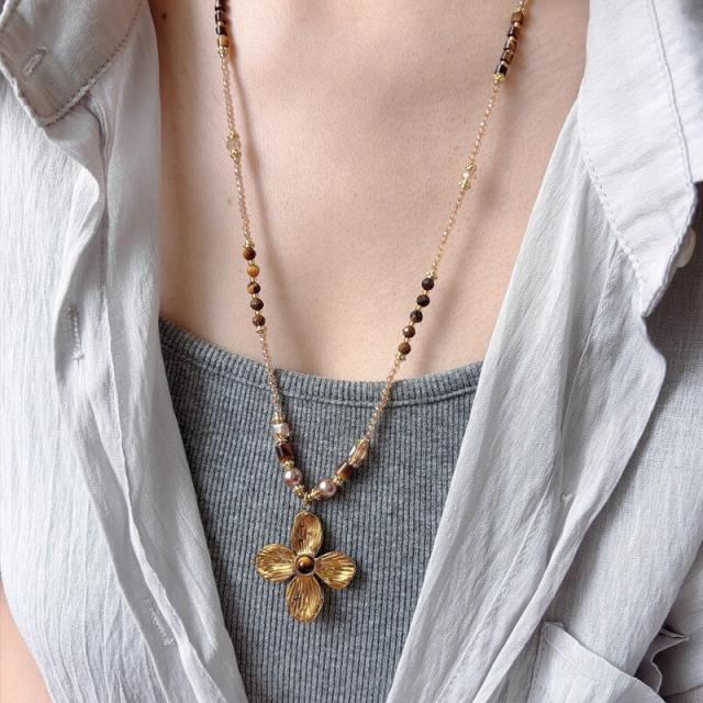 人気 ランキング ちょい贅沢 ギフト クリスマス プレゼント 2025タイガーアイ パール マラード フラワービーズ ロングネックレス ペンダント レディース 秋冬 セーターチェーン 軽奢華 高級感 ヴィンテージ ギフト ss272 贈り物 喜ばれる ギフト 女性