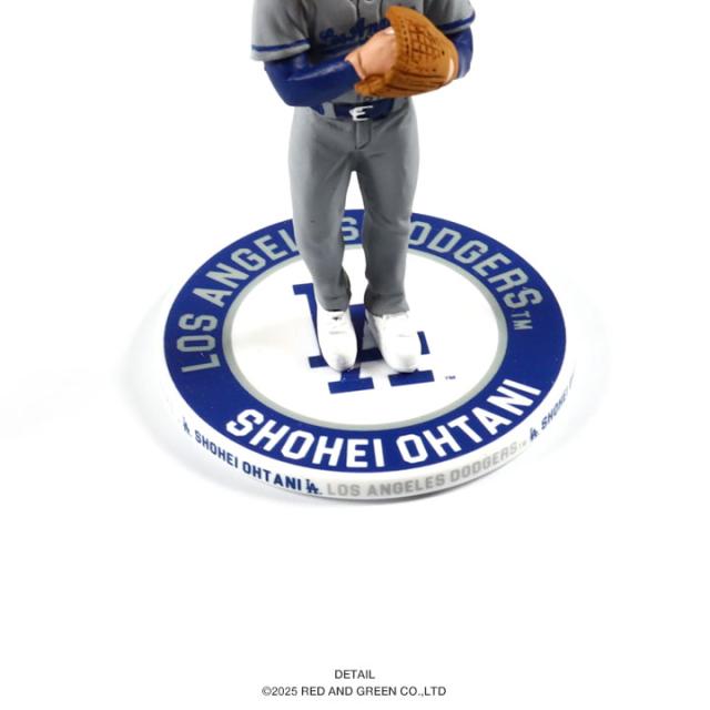 ドジャースの公式ユニフォームを着用した「ピッチャー大谷」モデル。両脚は台座に固定されています。アウェイゲーム用のグレーのユニフォームのフロントには、「Los Angeles 17」を刻印。キャップには「LA」ロゴを刻印。