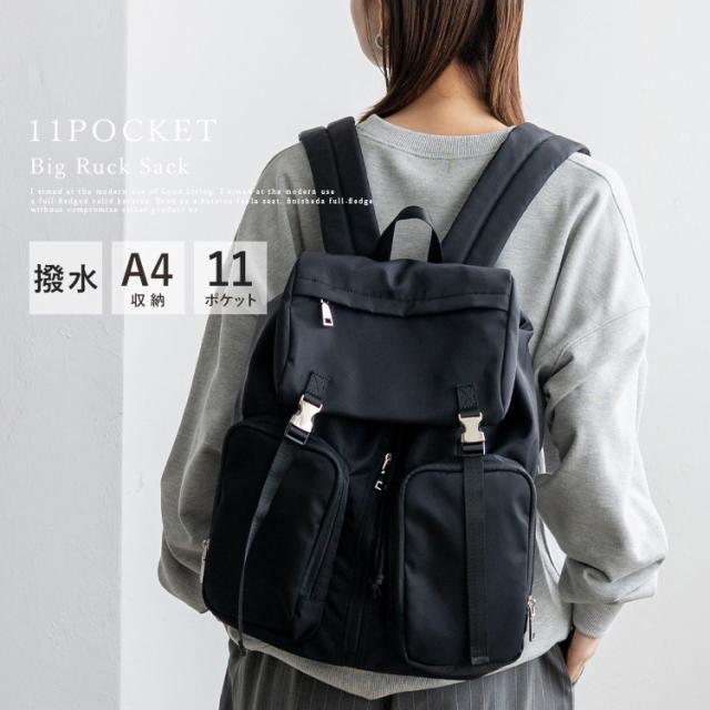 大容量 リュック レディース メンズ 11ポケット 通勤 通学 ナイロン 撥水 軽量 バックパック 旅行 通勤リュック A4対応 PC収納 シンプル ブラック inb-90094z 春 夏 秋 冬 春夏 秋冬 クリスマス プレゼント