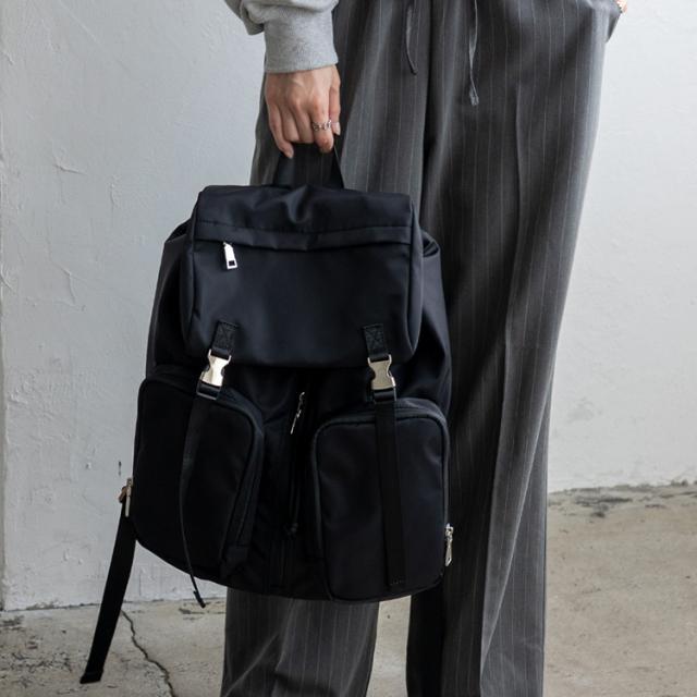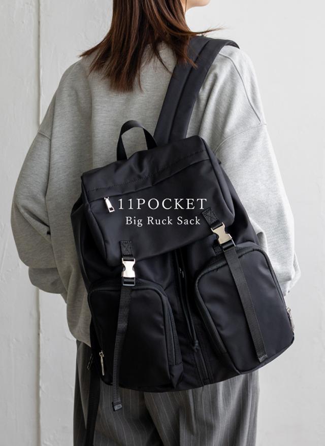●11ポケットで収納力抜群。フロントポケットや金具使いで大人カジュアルを演出。
