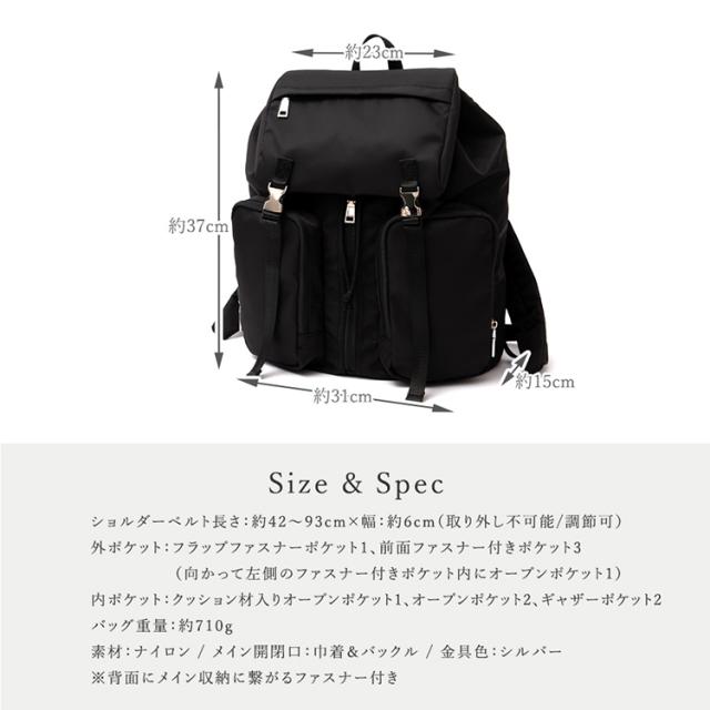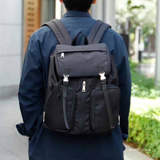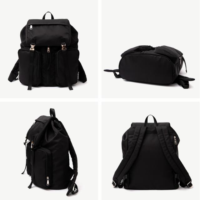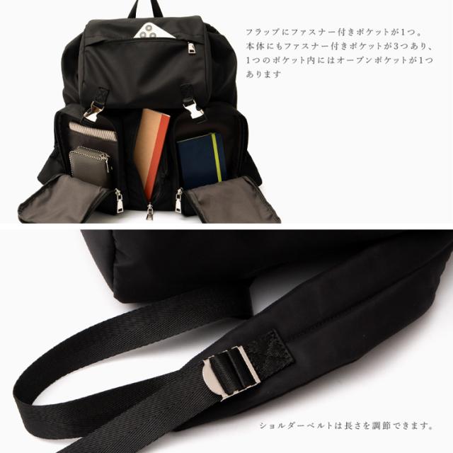 ●外ポケット:フラップファスナーポケット1、前面ファスナー付きポケット3(向かって左側のポケット内にオープンポケット1)