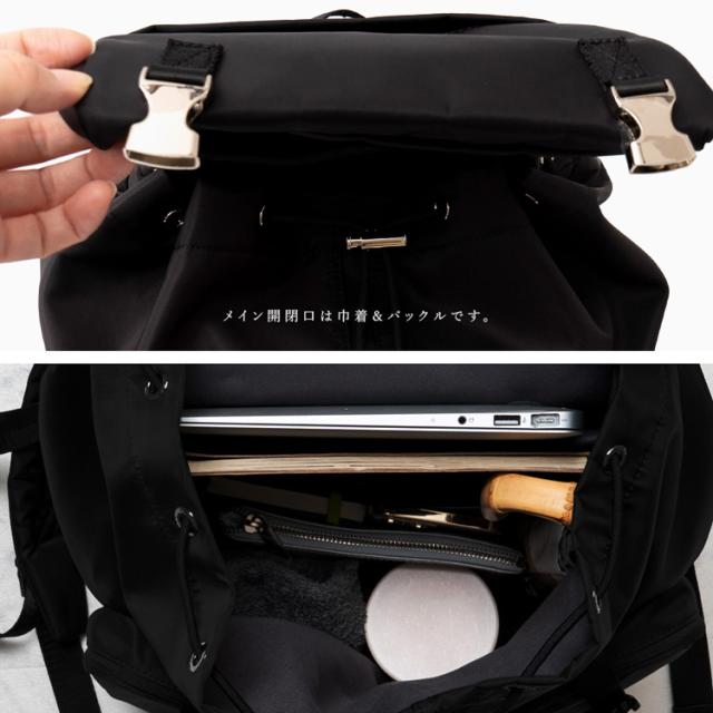 ●バッグのメイン開閉口は巾着&バックルになっております。