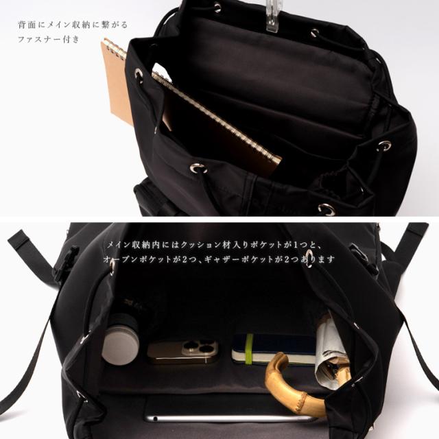 ●内ポケット:クッション材入りオープンポケット1、オープンポケット2、ギャザーポケット2