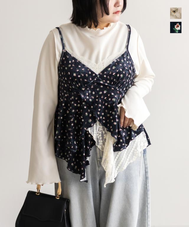 大きいサイズ/レディース/3L/4L/花柄ベロアレース使いキャミソール