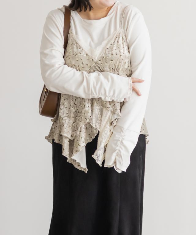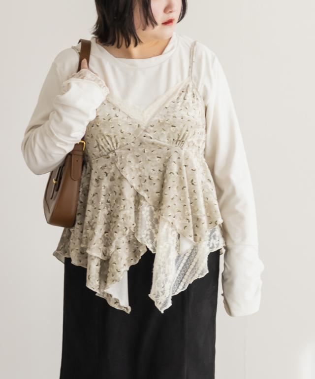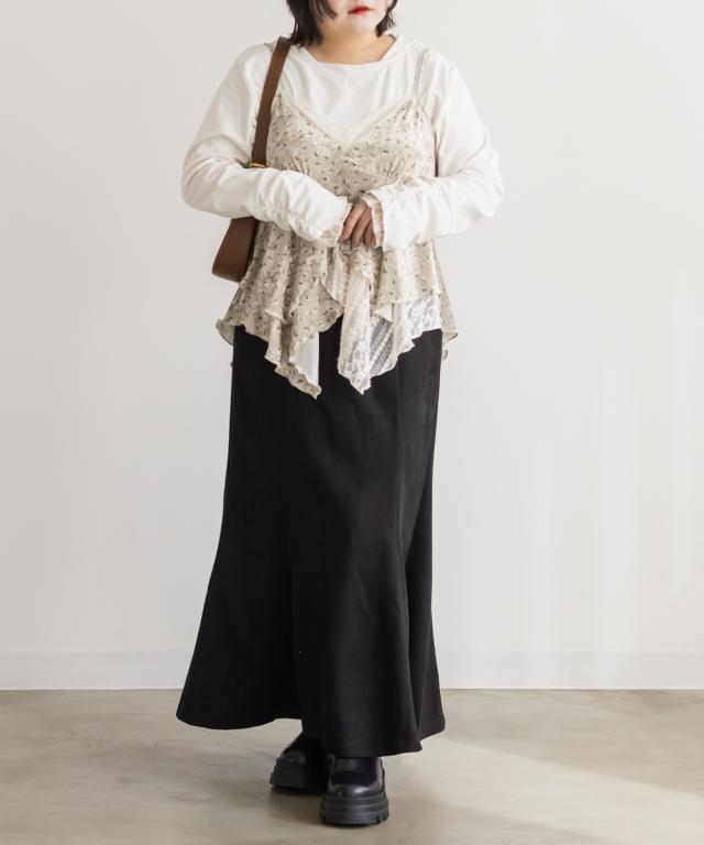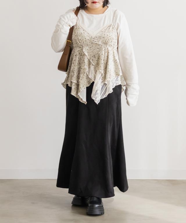 | 3Lサイズを着用してゆとりを持って着られるサイズ感でした。生地自体も少し伸びるので窮屈感無く着られました。胸下からふわっと広がるイレヘムデザインが、シンプルながらも動きのあるシルエットで、レイヤードするだけでおしゃれ見えします!繊細なレースと花柄のベロアが今っぽくて合わせるだけでトレンドコーデになります♪カジュアルにもフェミニン系にも合わせやすい万能アイテムです。Tシャツやタートルなど、インナーを変えればロングシーズン楽しめそうです!今っぽい雰囲気がたっぷりで、レイヤードを楽しみたい方におすすめです! |