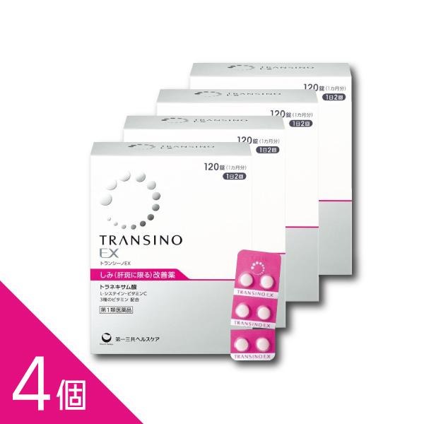 【4個】『トランシーノEX 120錠』お手頃サイズ30日分 しみ改善薬 8週間の服用で肝斑を改善へ 薬剤師対応 トラネキサム酸【第1類医薬品】