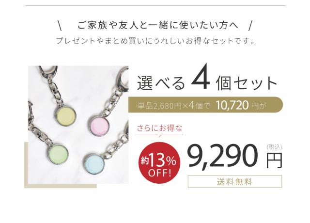 | 使用範囲 | 本製品1個につき、日常的に持ち歩くアイテム1点を目安にご使用いただけます。 ※ご使用いただく方法や環境により使用感や感じ方には個人差があります。 |