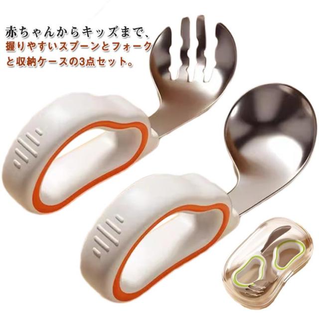 スプーン 収納ケース付き 子供 3点セット スプーンフォーク ベビー セット トレーニング 離乳食 保育園 練習 ベビー キッズ 握りやすい カトラリー 赤ちゃん 持ち運び 出産祝い ギフト スプーン 食べやすい