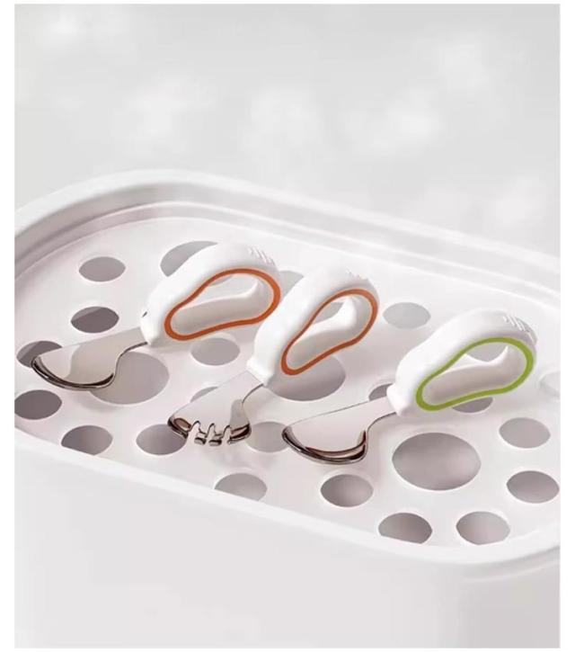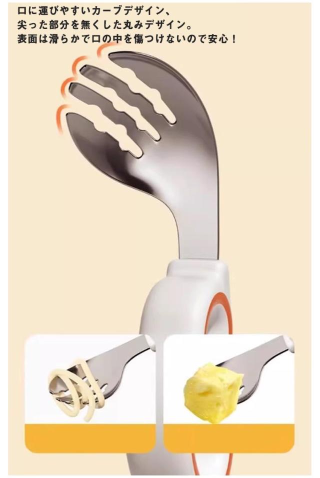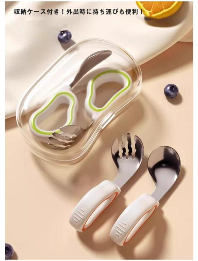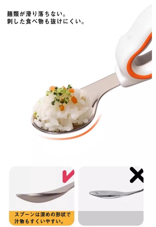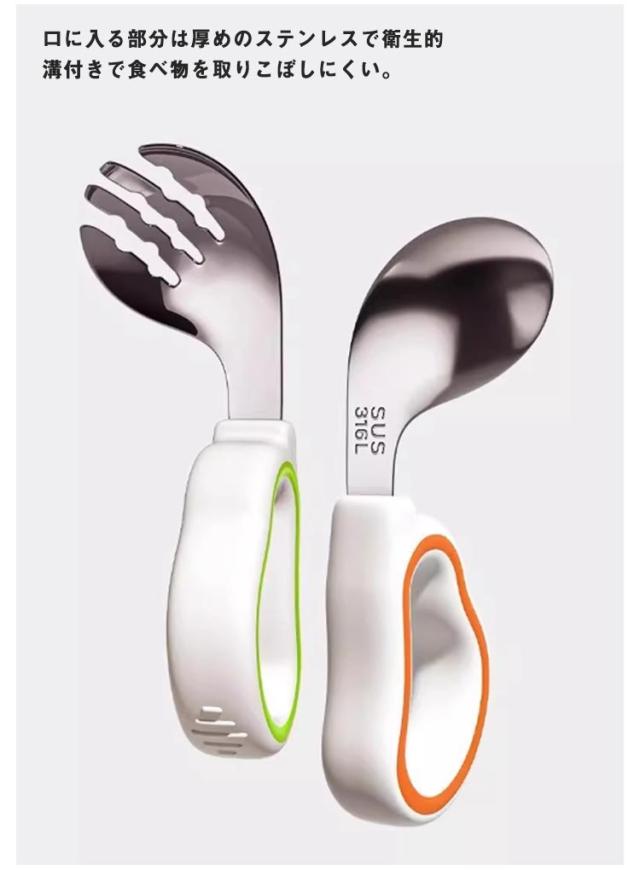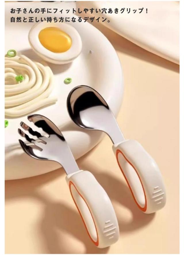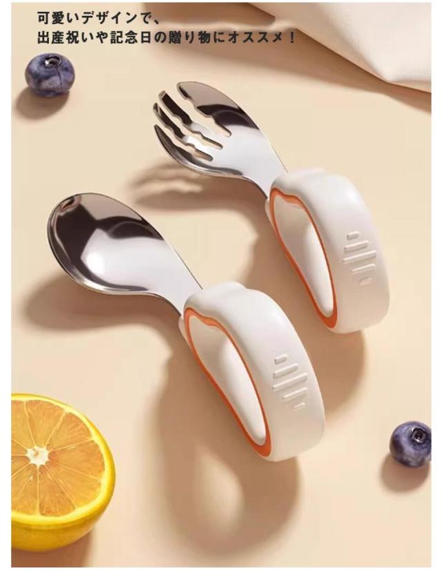 | 赤ちゃんからキッズまで、握りやすいスプーンとフォークと収納ケースの3点セット。 お子さんの手にフィットしやすい穴あきグリップ!自然と正しい持ち方になるデザイン。 収納ケース付き!外出時に持ち運びも便利! 口に入る部分は厚めのステンレスで衛生的 溝付きで食べ物を取りこぼしにくい。麺類が滑り落ちない。刺した食べ物も抜けにくい。 口に運びやすいカーブデザイン、尖った部分を無くした丸みデザイン。表面は滑らかで口の中を傷つけないので安心! スプーンは深めの形状で汁物もすくいやすい。 どんな握り方にもしっかりフィット!赤ちゃんの自然な指の形にフィットするデザインだから持ちやすい。ストレスなく自主性を促す。 可愛いデザインで、出産祝いや記念日の贈り物にオススメ! | |
