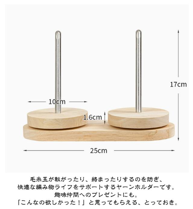 | 天然木×ステンレス製ヤーンホルダー。【2連?3連】 毛糸玉が転がったり、絡まったりするのを防ぎ、快適な編み物ライフをサポートするヤーンホルダーです。 編み終わった毛糸は、このヤーンホルダーに巻き取り収納することもできます 編み物中に糸が絡まってイライラ…そんなストレスから解放されます。土台部と回転部が分かれた設計に加え、軸がステンレス製なので丈夫で摩擦が少なく、スムーズな回転を実現。サクサク編めて、作業効率もアップ。編み物がもっと好きになる。 天然木のぬくもりを感じながら、心穏やかに編み物をお楽しみいただけます。丁寧に磨き上げられた、天然木を贅沢に使用。やさしい手触りが魅力です。 使わない時はお部屋のインテリアとして、そっと飾っておくだけで雰囲気がアップ。 趣味仲間へのプレゼントにも。 「こんなの欲しかった!」と思ってもらえる、とっておき。 | |