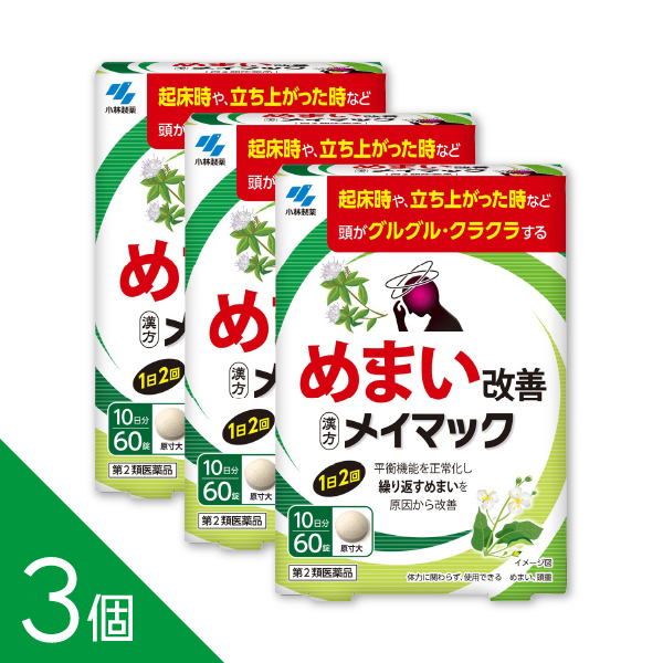 【3個】ストレスや疲れによるめまいに『メイマック60錠』体質に関わらず使える漢方薬【第2類医薬品】沢瀉湯配合で繰り返すふらつきをやわらげる