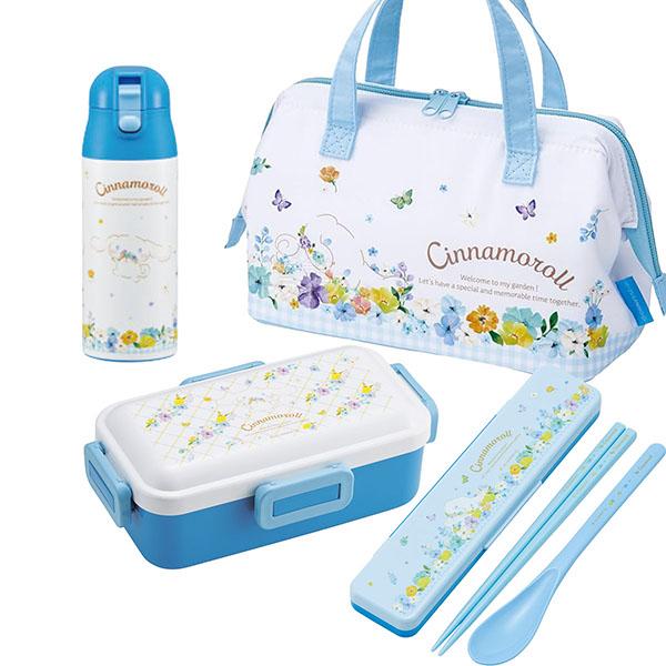 | シナモロールのお弁当箱セットです。4点ロックのお弁当箱は、しっかりフタが出来るので汁漏れも安心◎お箸とスプーンのコンビセットに、コンパクトなステンレスボトル。単品で買うよりもお買得なセットをこの機会に是非どうぞ! | |