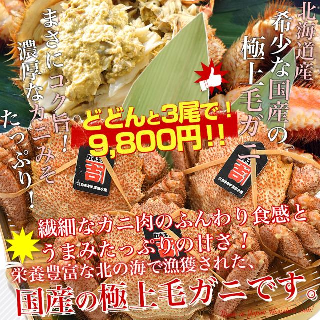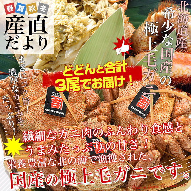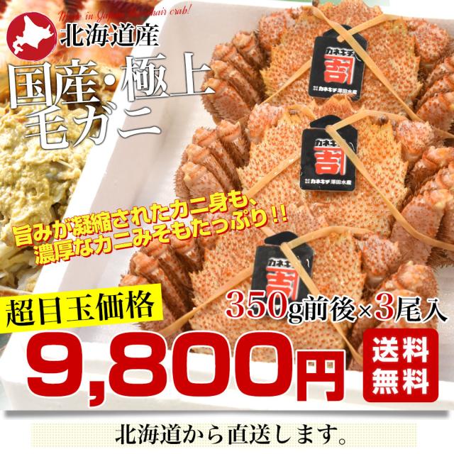 北海道より直送 北海道産 「浜ゆで 毛ガニ」350g前後×3尾入 送料無料 かに カニ 毛がに 毛蟹【発送時期:カート内に記載しております】