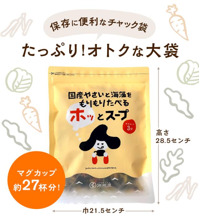 [大袋] スープ 国産やさいと海藻をもりもり食べるホッ。とスープ 165g×1袋 わかめ 昆布 春雨 キャベツ にんじん 野菜香味だし 洋風スープ 即席スープの素 インスタント たっぷり約27杯分 お得