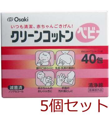 クリーンコットンベビー清浄綿 約6cm×7.5cm 2ツ折 40包入 5セット 送料無料