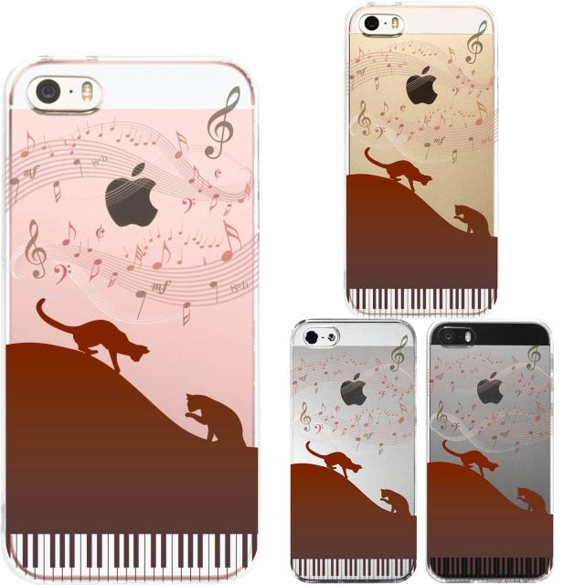 iPhone5 iPhone5s ケース クリア ピアノ シルエット猫 ブラウン スマホケース ハード スマホケース ハード 送料無料
