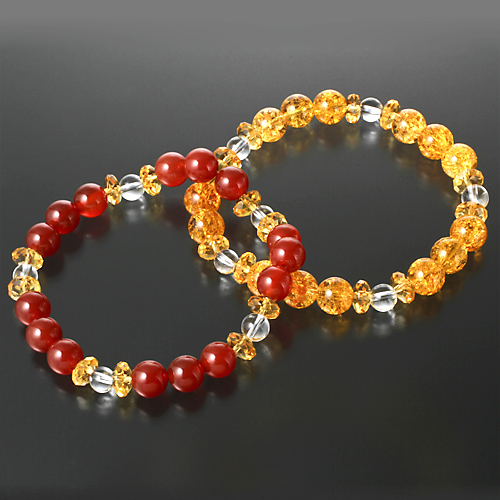 【赤メノウ】白水晶5個(6mm珠)、黄水晶10個(8×4mm/カット)、赤メノウ15個(8mm珠)